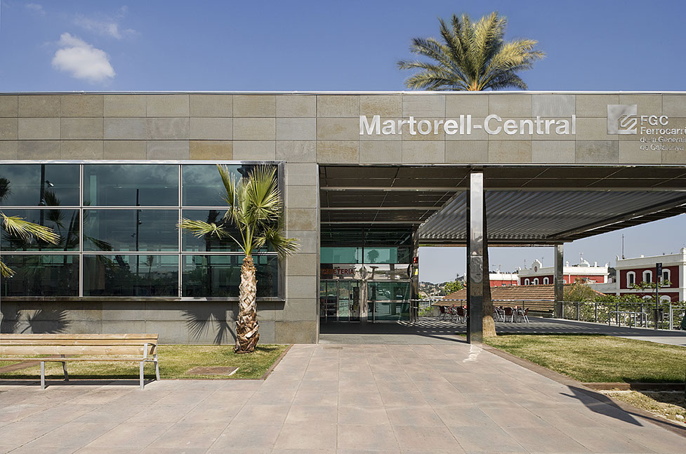 El punto de proximidad entre las dos líneas férreas que atraviesan la ciudad de Martorell ( línea LLobregat Anoia de Ferrocarril de la Generalitad de Cataluña y línea de Cercanías RENFE) propicia la ubicación de un nuevo equipamiento que reúne, en un único edificio intercambiador , las dos estaciones de Martorell Central FGC y RENFE. El edificio de la nueva estación de Martorell Central FGC, inaugurado en Mayo 2007, se proyecta conjuntamente a la nueva estación de RENFE, actualmente en fase de obras permitiendo, en el próximo futuro, la conexión entre las dos estaciones en un par de minutos. El conjunto edificado se sitúa en el frente principal de la nueva plaza de las Estaciones y como puente sobre las vías. Entre los dos edificios se crea un atractivo punto de unión formalizado por un mirador con pérgola entrelazando la articulación formal y funcional de los dos volúmenes. Esta unidad compositiva también se percibe desde los andenes, donde el efecto “puente” acentúa la percepción de la citada intermodalidad entre ambas estaciones. El edificio intercambiador asume, con esta nueva visión de conjunto urbano, el máximo protagonismo, que no es solamente funcional, ya que se sitúa y actúa como punto de confluencia intermodal del área, sino también formal, mediante la aportación de calidad arquitectónica en un entorno urbano hasta ahora muy fragmentado. Finalmente hay que señalar que la implantación del intercambiador FGG y RENFE incluye una serie de actuaciones para la integración en la ciudad y mejorar su entorno. Las obras de urbanización del entorno se centran en la creación de la nueva plaza de las Estaciones, la creación de los accesos mediante rampas, escaleras fijas y escalera mecánica que conectan los barrios limitofos, situados a cotas inferiores respecto a la plaza con este nuevo espacio urbano ajardinado .