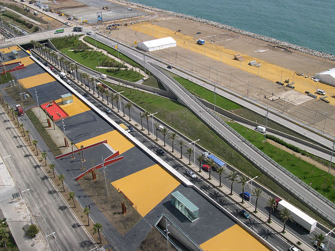 Espacio público sobre Ronda Litoral. Barcelona. 2004