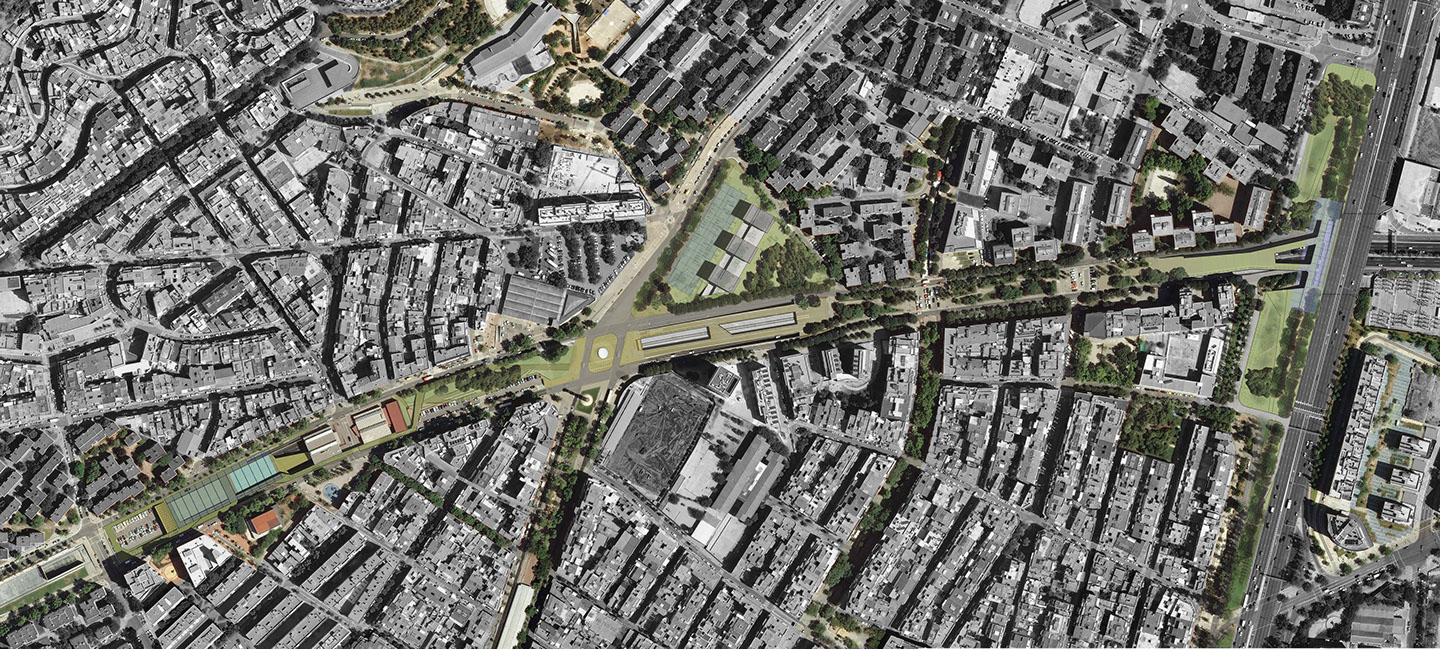 Se puede afirmar que la rotunda transformación de Barcelona a raíz del Juegos Olímpicos del 92 gravitó sobre tres elementos fundamentales: la existencia de una idea de ciudad esbozada años antes en iniciativas como las áreas de nueva centralidad, la construcción de las Rondas con una doble perspectiva infraestructural y de recalificación urbana y el establecimiento de una nueva relación con el litoral (quizás el pilar con un carácter más inequívocamente redistributivo de los tres). Pasados tantos años de la construcción de las Rondas, la sociedad, la tecnología, y las costumbres y hábitos han evolucionado y es pertinente reflexionar e intentar mejorar las ineficiencias detectadas, algunas por posibles errores iniciales y otros por el cambios asociados al paso del tiempo y a la propia obsolescencia tecnológica de algunas intervenciones. La presencia de la Ronda de Dalt, a pesar de su implantación deprimida y su trazado adaptado a la morfología de este territorio de la ciudad, supone una franja significativa de discontinuidad, barrera y segregación, de los tejidos urbanos de estos barrios y de los sistemas naturales existentes entre la ciudad y la Sierra de Collserola. Esta situación física constituye el denominador común de la problemática urbana a resolver en el conjunto de todos los Lotes en estudio a la Ronda de Arriba. La actuación prevista en el conjunto de los lotes tiene que permitir convertir esta frontera urbana que supone la Ronda en un espacio de bisagra, a velocidad humana y con vocación de devenir un corredor de transporte público eficiente y de circulación de bicicletas al espacio generado sobre rasante.