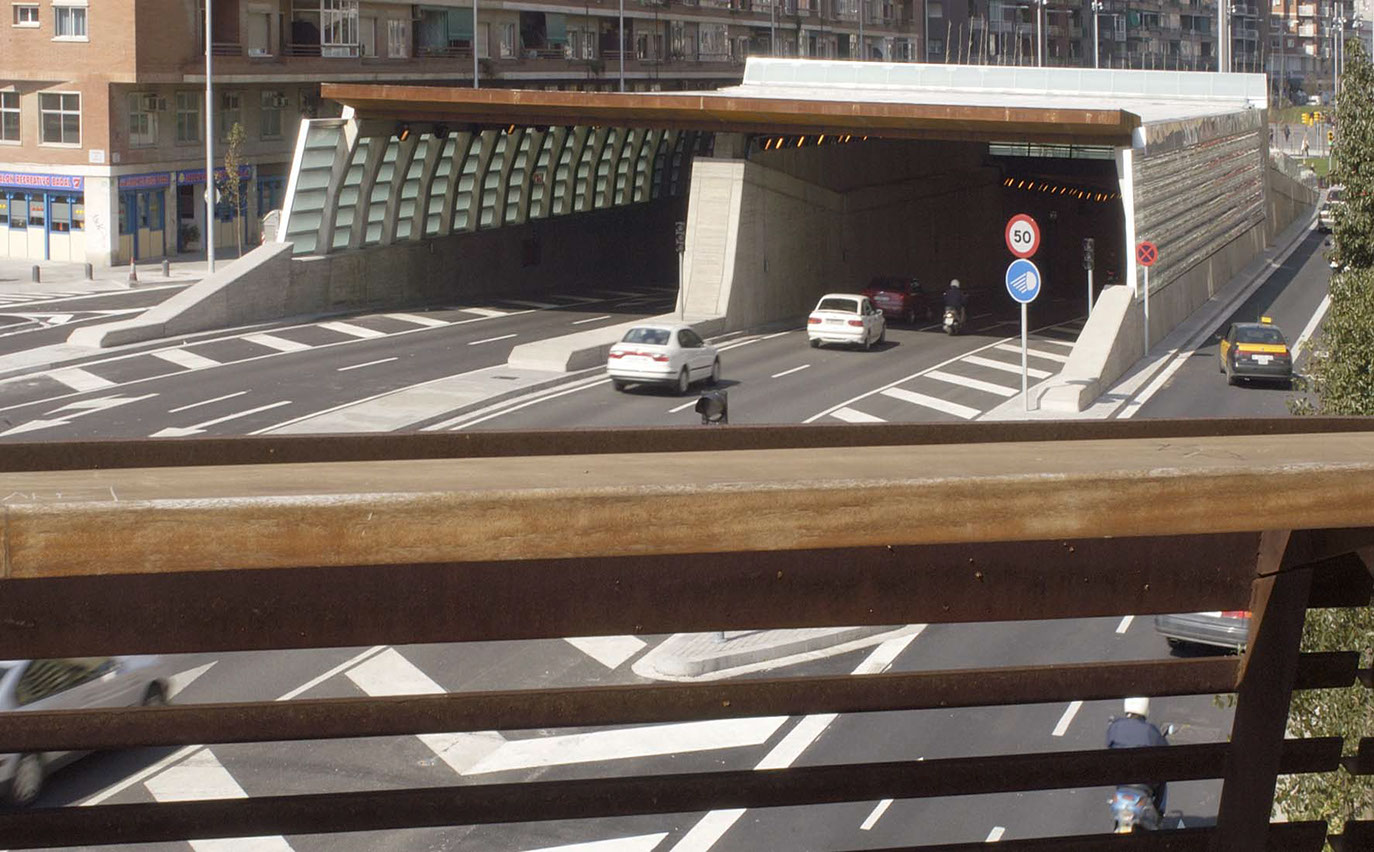 La Ronda del Mig , construida en los años 1969 -79 en respuesta a la necesidad viaria del momento, has sido objeto en los años 1997 - 2003 de un importante proceso de “replanteo y reconversión”. La Ronda del Mig con 11 Km. de desarrollo es una vía con trazado segregado, una infraestructura viaria a escala metropolitana y local que se desarrollaba desde la plaza Cerdá hasta la Avenida Meridiana a través de un trazado poco unitario y continuo: se trataba en buena parte como una vía segregada en trinchera con frecuencias variables al largo de su trazado en superficie y sección en túnel. A causa de la expansión y aumento de la densidad urbana, y sobretodo gracias a un profundo cambio respecto a la visión del desarrollo de las grandes ciudades, esta infraestructura de tipo “periférico” construida en la óptica de los años 70, ha adquirido , a día de hoy , el rol central de un área de fuerte potencialidad regeneradora de calidad del entorno urbano. La idea de la cobertura de las vías de transito segregado se ha convertido en estos años en un argumento importante para la busqueda y mejora de la calidad de vida gracias también a la “lección” de la Ronda de Dalt, claro ejemplo de maximización de la producción del espacio publico. Las autoridades locales han trabajado desde hace años con la colaboración de los diferentes distritos, para conseguir definir las necesidades de la población limítrofe y concretar las posibilidades reales de compatibilidad con las exigencias de movilidad urbana, para conseguir en cierta manera la “reconquista” de una parte de la ciudad y hacer de aquello que dividía un elemento de unión. Los objetivos expresos no respondían solamente al alarmante problema de la contaminación acústica si no también a la necesidad, y el deseo, de recuperar un espacio verde de uso publico, asignatura pendiente de esta parte de ciudad, y fomentar el paseo y sus conexiones en red.