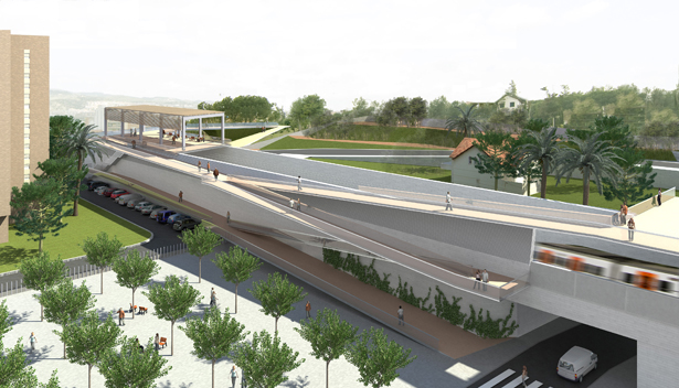 El proyecto de mejora e integración urbana en la ciudad de Sant Vicenç dels Horts se localiza a lo largo del trazado de las vías de FGC que cruzan longitudinalmente todo el casco urbano. Tiene por objetivo , la mejora de la calidad urbana de las áreas a lo largo de la traza de esta infraestructura ferroviaria mediante la creación de nuevos espacios urbanos situados sobre las losas de cobertura de las vías y la mejora de la permeabilidad transversal para vehículos y peatones. Considerando como punto de partida la imposibilidad de modificar la traza ,ni tampoco la rasante, de la vía del ferrocarril , el proyecto define , a lo largo de su recorrido por el casco urbano que atraviesa, “los puntos estratégicos ” , para poderlos utilizar , sobreponiéndose a la vía, como instrumentos de unión y de “sutura” y recuperar, al mismo tiempo ,un “espacio público” del que actualmente la ciudad se deficitaria. Se individúan cuatro áreas , a lo largo de la traza de los FGC, que pueden , con la cobertura de las vías ,u otros recursos arquitectónicos, significar o aportar sustanciales mejoras en la conectividad transversal rodada y para peatones, influyendo fuerza en la mejora de la calidad urbana alrededor y a la recomposición del tejido urbano de umbral. Se en estos puntos que la traza del ferrocarril, mediante elementos arquitectónicos de conexión, creados associadament a su trazado , que permite unir, aprovechar y ampliar los espacios urbanos presentes a los lado de la misma.
