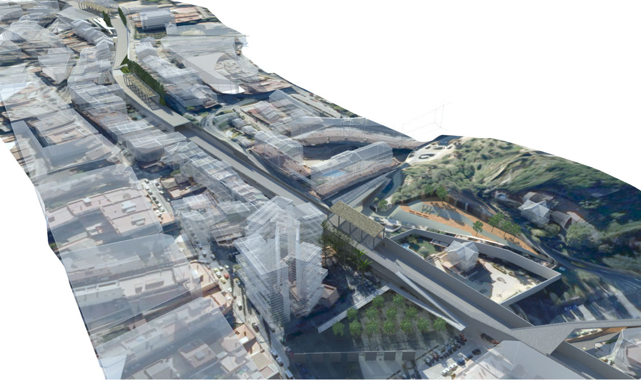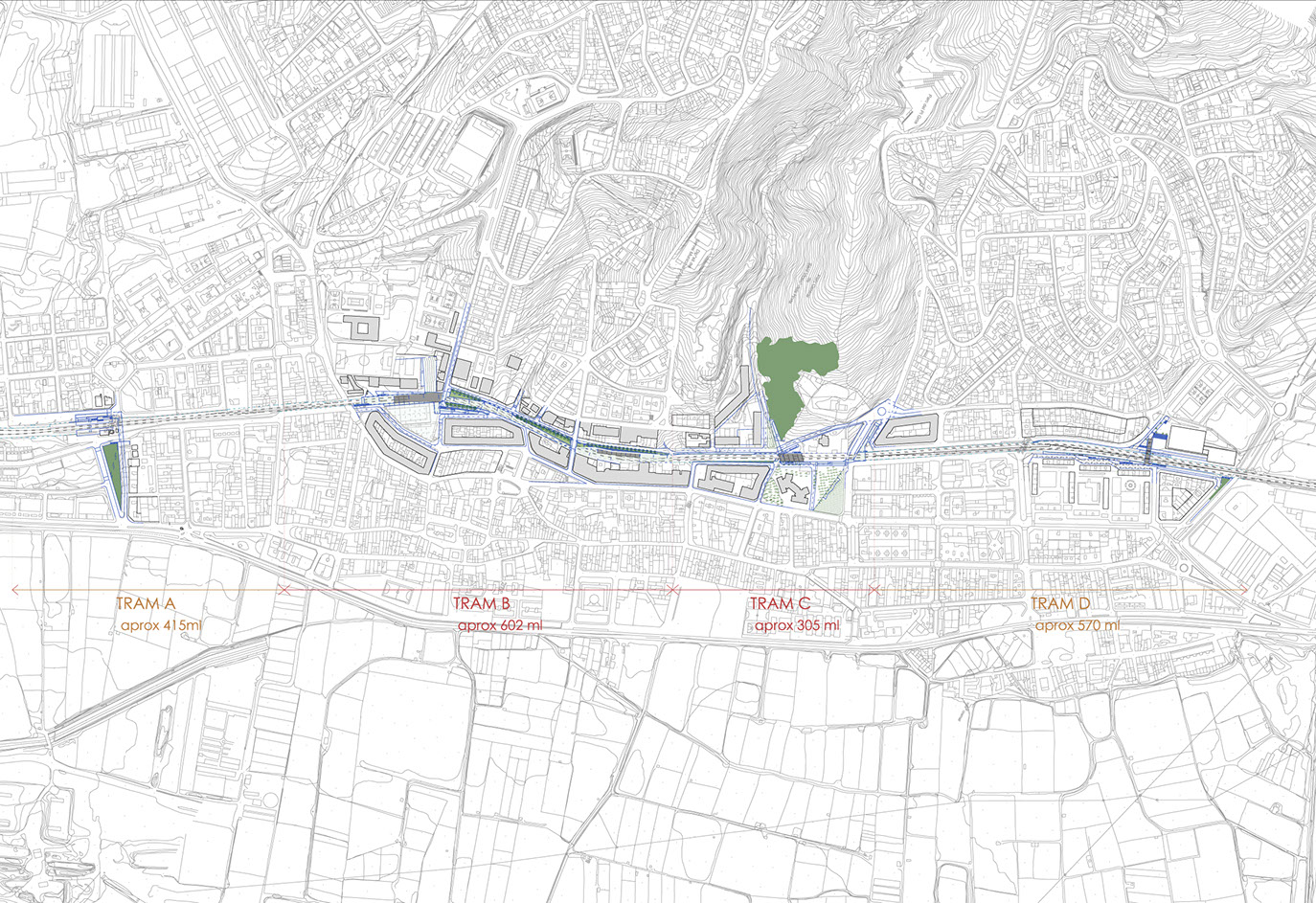 El proyecto de mejora e integración urbana en la ciudad de Sant Vicenç dels Horts se localiza a lo largo del trazado de las vías de FGC que cruzan longitudinalmente todo el casco urbano. Tiene por objetivo , la mejora de la calidad urbana de las áreas a lo largo de la traza de esta infraestructura ferroviaria mediante la creación de nuevos espacios urbanos situados sobre las losas de cobertura de las vías y la mejora de la permeabilidad transversal para vehículos y peatones. Considerando como punto de partida la imposibilidad de modificar la traza ,ni tampoco la rasante, de la vía del ferrocarril , el proyecto define , a lo largo de su recorrido por el casco urbano que atraviesa, “los puntos estratégicos ” , para poderlos utilizar , sobreponiéndose a la vía, como instrumentos de unión y de “sutura” y recuperar, al mismo tiempo ,un “espacio público” del que actualmente la ciudad se deficitaria. Se individúan cuatro áreas , a lo largo de la traza de los FGC, que pueden , con la cobertura de las vías ,u otros recursos arquitectónicos, significar o aportar sustanciales mejoras en la conectividad transversal rodada y para peatones, influyendo fuerza en la mejora de la calidad urbana alrededor y a la recomposición del tejido urbano de umbral. Se en estos puntos que la traza del ferrocarril, mediante elementos arquitectónicos de conexión, creados associadament a su trazado , que permite unir, aprovechar y ampliar los espacios urbanos presentes a los lado de la misma.